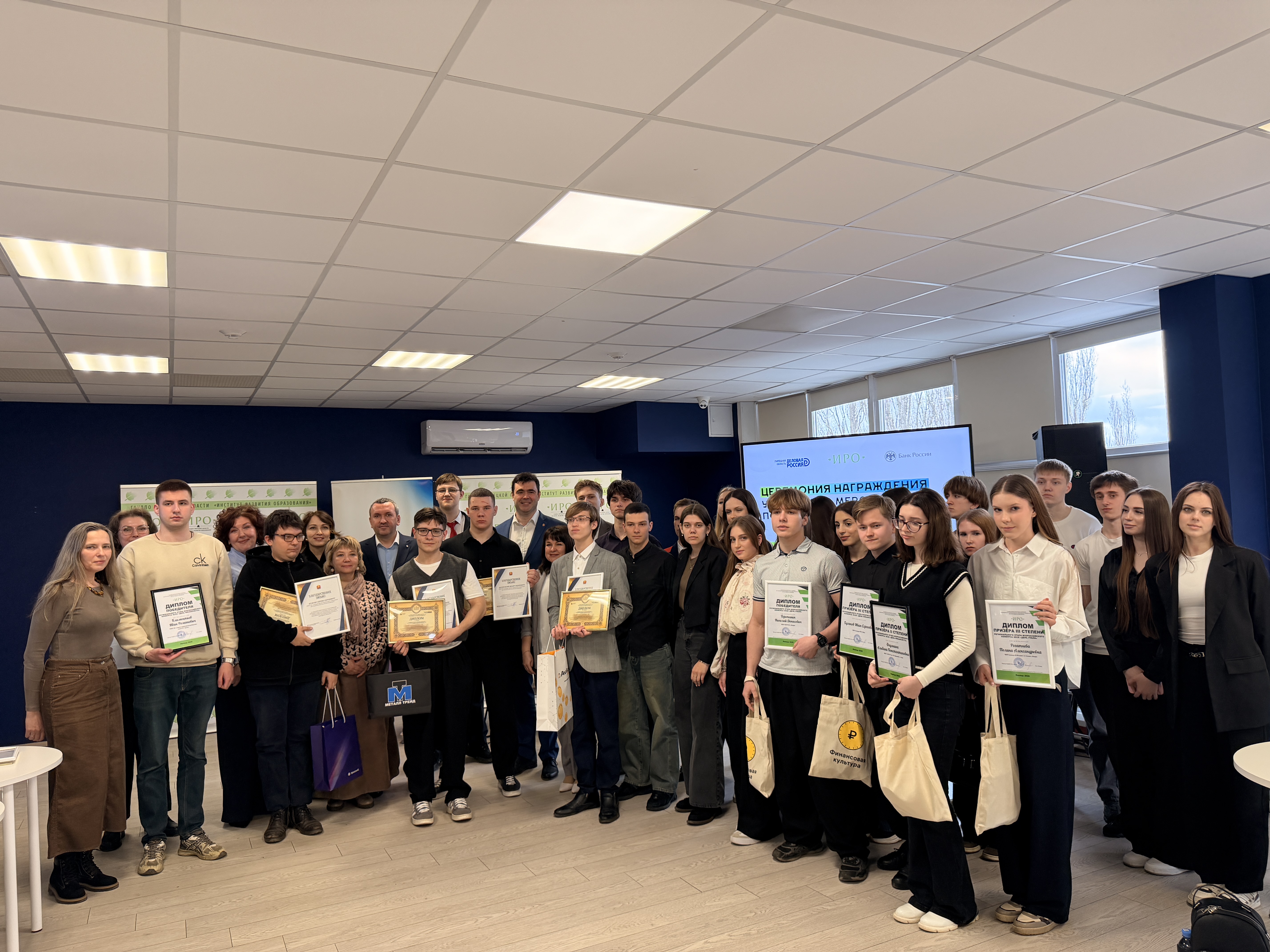 Победитель и призеры Олимпиады были награждены дипломами и ценными призами спонсоров, предоставленными генеральным директором ООО «Металл трейд» Станиславом Каменецким, начальникомуправления малого и среднего бизнеса ПАО «Банк Уралсиб» в Липецке Светланой Ермаковой, генеральным директором ООО «Авикс групп» Олегом Доброхотовым и предпринимателем в сфере производства кожевенных изделий Денисом Батраковым.